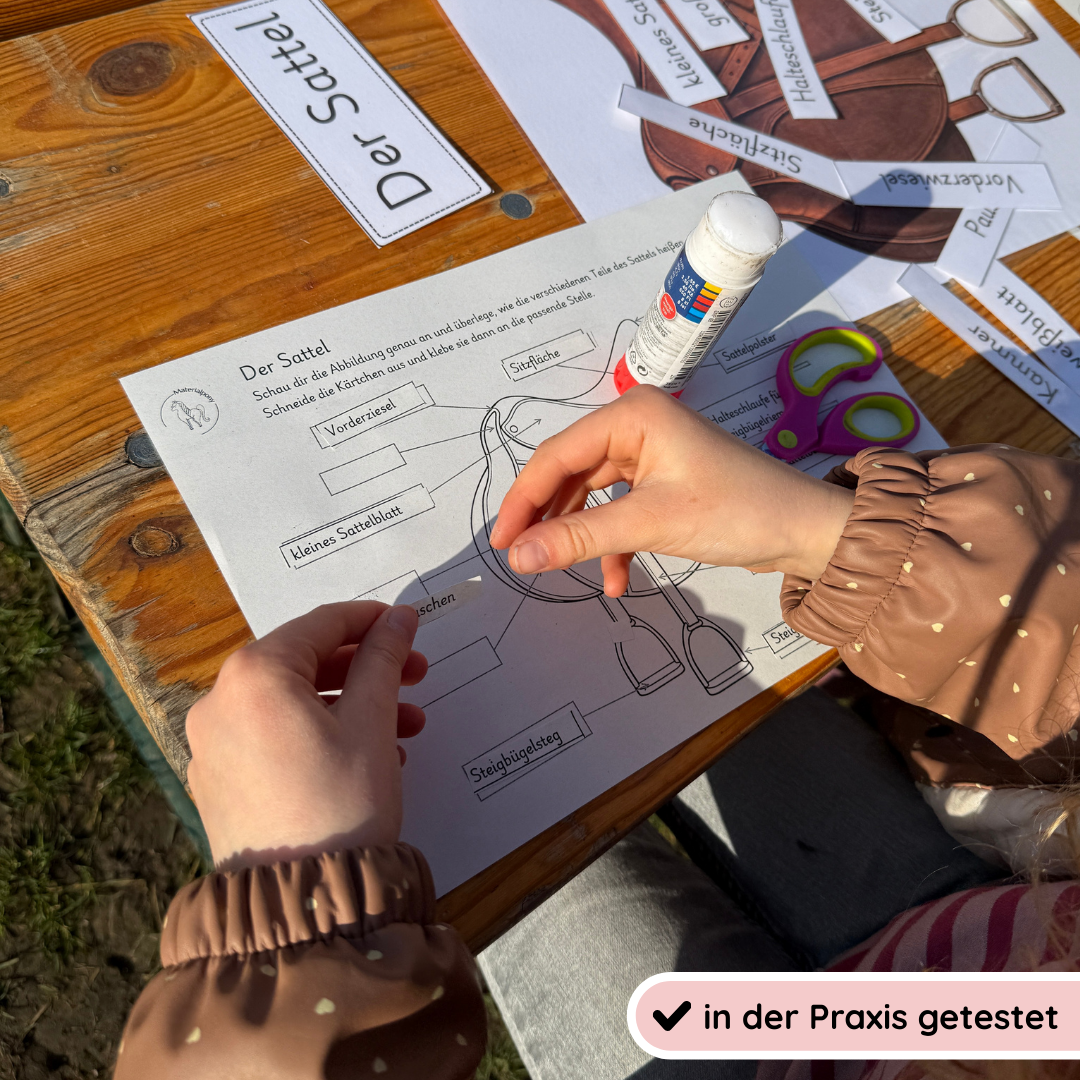 Die klare und kindgerechte Darstellung unterstützt Kinder dabei, einzelne Sattelteile zu erkennen, richtig zuzuordnen und sicher zu benennen. Auch Nichtleser können aktiv mitarbeiten und ein erstes Verständnis für den Aufbau eines Sattels entwickeln.